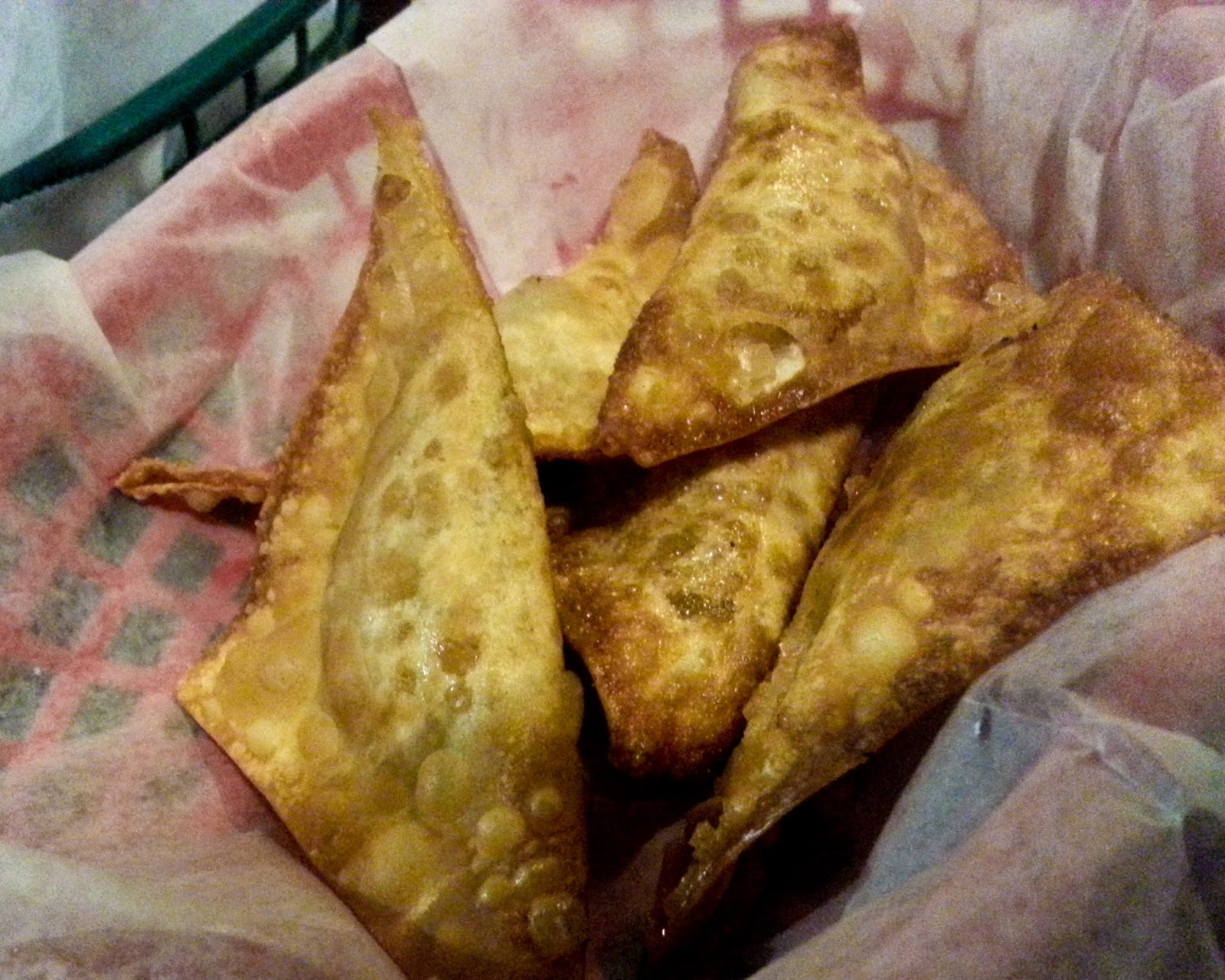 - Cheesesteak egg-rolls. Exactly what they sound like. Meat and cheese rolled in a wonton, and deep fried. Served with some kind of forgettable sauce. Kind of greasy, and kind of bland, but exactly as advertised I suppose. If I was on the far end of a boozy night, they'd go down pretty well.